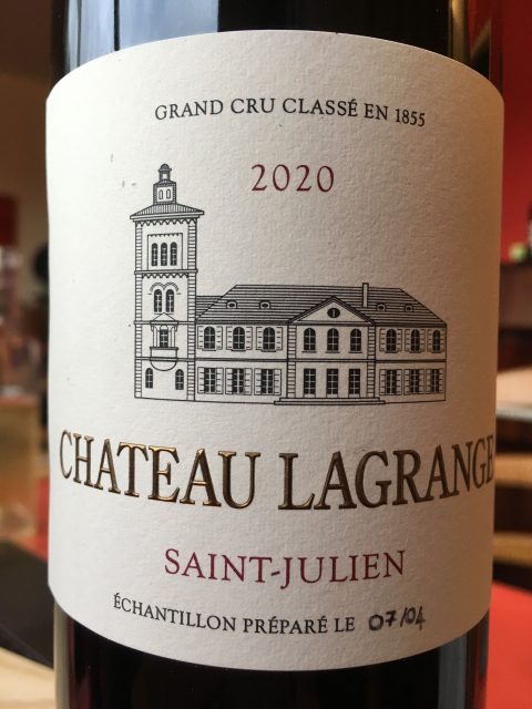 Lagrange (St Julien; from a vineyard of 118 hectares on two Guntzian gravel slopes; historically low yields of 26.5 hl/ha and only 38% of the total production made it into the grand vin; 74% Cabernet Sauvignon; 24% Merlot; 2% Petit Verdot; pH 3.58; IPT 77; 13.5% alcohol). Purple/black at the core, but nicely translucent; glossy and quite viscous with blue/purple highlights on swirling and a violet rim. This has a beautifully archetypal St Julien nose – delicate yet expressive, refined and elegant yet full and engaging, bright and energetic.
