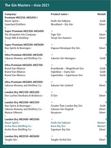 The 2021 Asian Gin Masters competition gathered gins from around the world, to be judged by a top panel that looked at the products at various price points, according to their different styles. The judges were able to award Silver, Gold and – for truly excellent examples – Master medals.