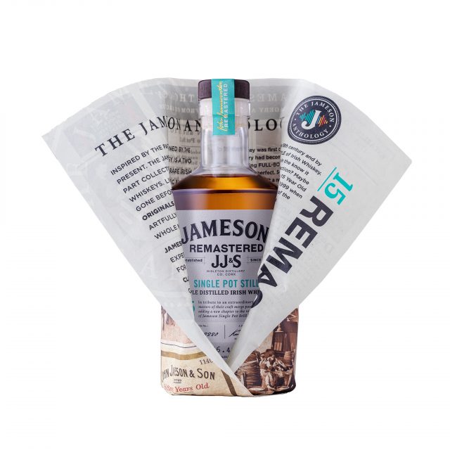 Jameson 15 Year Old Single Pot Still, the first release within the Jameson Remastered Volume, is a reinvention of a much loved classic which was last produced in 2000 as a limited edition offering. The whiskey is composed of three whiskey styles, spanning 15 to 17 years of maturation in American bourbon barrels and Oloroso sherry butts and is presented with the bottle wrapped in newspaper, with one side uncovering Jameson’s heritage and the other marking the present day.