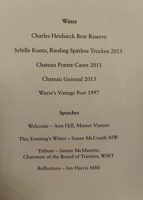 After dinner, Ian stood up to give thanks to the attendees for their support, telling them that they were all there due to the positive role they had played in his career, while describing himself as “blessed” to be “captain” at the WSET, which he said had grown from a “modest” team in 2002 to as many as 168 employees globally
