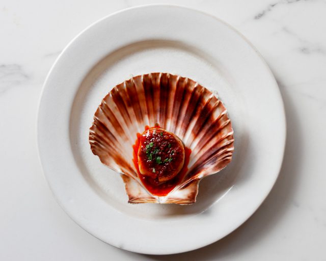 One of our most popular dishes is Orkney scallops with Jerusalem artichoke and nduja. The spice from the Nduja is tough to find a match with, but we have found it! The pairing is a skin contact Catarratto from the northwest coast of Sicily (Aldo Viola, Krimiso). The tannins from the skin contact work well with the heat of the nduja, and the sweetness from the wine and the brown butter is a marriage of love.
