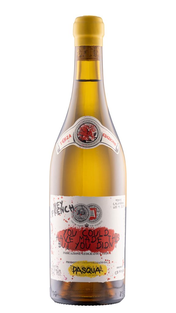 “Our dream was to create a wine outside the box, which no one had yet imagined, but with the well-defined and recognizable character of our cellar,” Riccardo Pasqua, CEO of Pasqua Vigneti e Cantine explains, of the company’s Italian multi-vintage white wine, provocatively entitled Hey French: You Could Have Made This But You Didn’t.