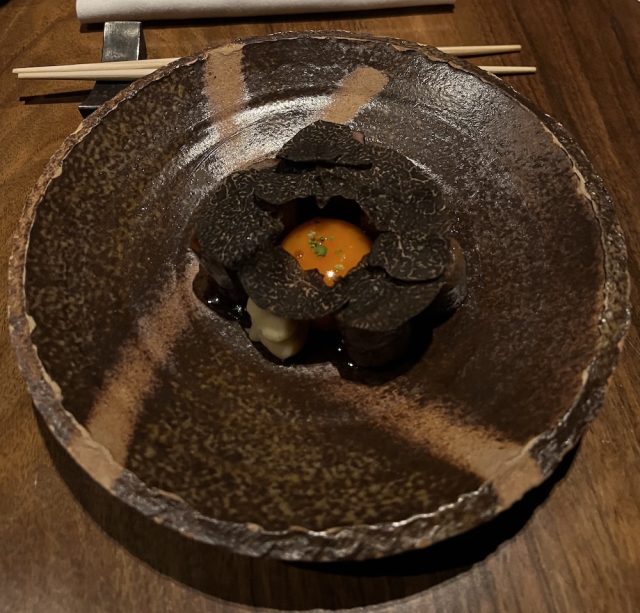 Douglas Blyde joined a truffle enhanced five-course dinner at The Escoffier Room at Westminster Kingsway College. Run, on rotation, by students of the culinary college, the refurbished restaurant takes the name of one of the founders of the institution, Auguste Escoffier, who oversaw the kitchens of The Savoy in the Victoria era. Celebrating the favourably aromatic, white and black truffle-enriched products by the Rome based La Rustichella (1986), the bill of fare was created in collaboration with Senior Chef Lecturer and game specialist and author, José Souto, with Norman Fu, Head of Third Year Professional Chefs Diploma, himself a mega diner, overseeing the be-toqued kitchen brigade. Wines were provided by Antica Cascina dei Conti di Roero, a maker specialising in Arneis and Nebbiolo, founded by the cousins of the Roagna winery.