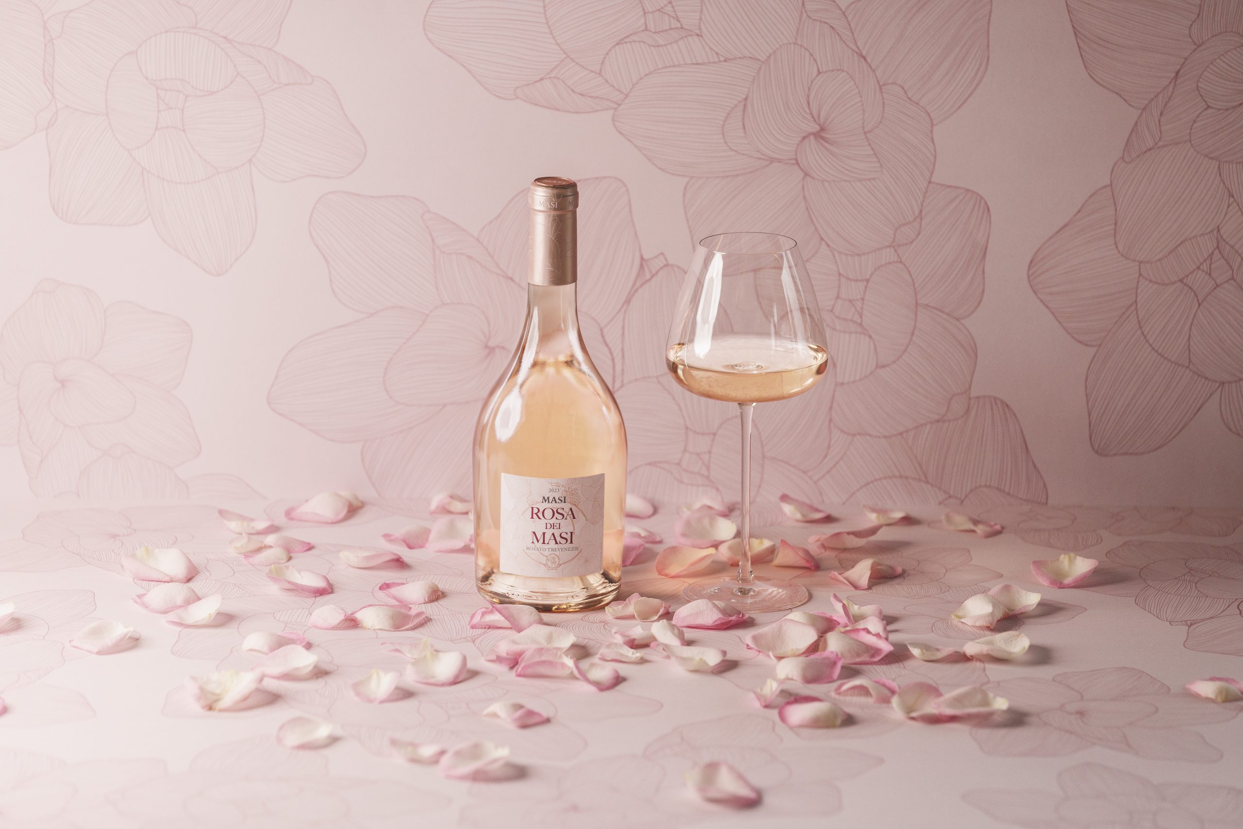 The label also refreshes Masi’s traditional design. Boscaini sees it in conversation with the past, but led by a modern aesthetic: “the characteristic oval of Masi’s historic labels is enriched by a profusion of rose petals drawn with a light touch of ink.”