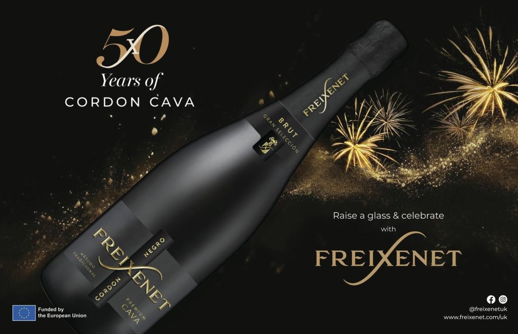 This year marks a milestone anniversary for Cordón Negro, Freixenet’s famous Cava. The iconic black bottle has celebrated its 50th anniversary with a new image and refreshed premium packaging, along with a new logo for Freixenet.
