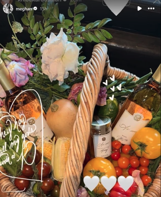 When Kardashian took to Instagram to share photos from sister Kylie’s 28th birthday celebrations, the gift basket was visibly present. However, eagle-eyed fans were quick to spot that Kardashian had neglected to tag Markle in the post. Instead, the former royal resorted to taking a screen shot of Kardashian’s photo and sharing it on her own account, along with a sticker reading “hey hey all my girls with a K.”