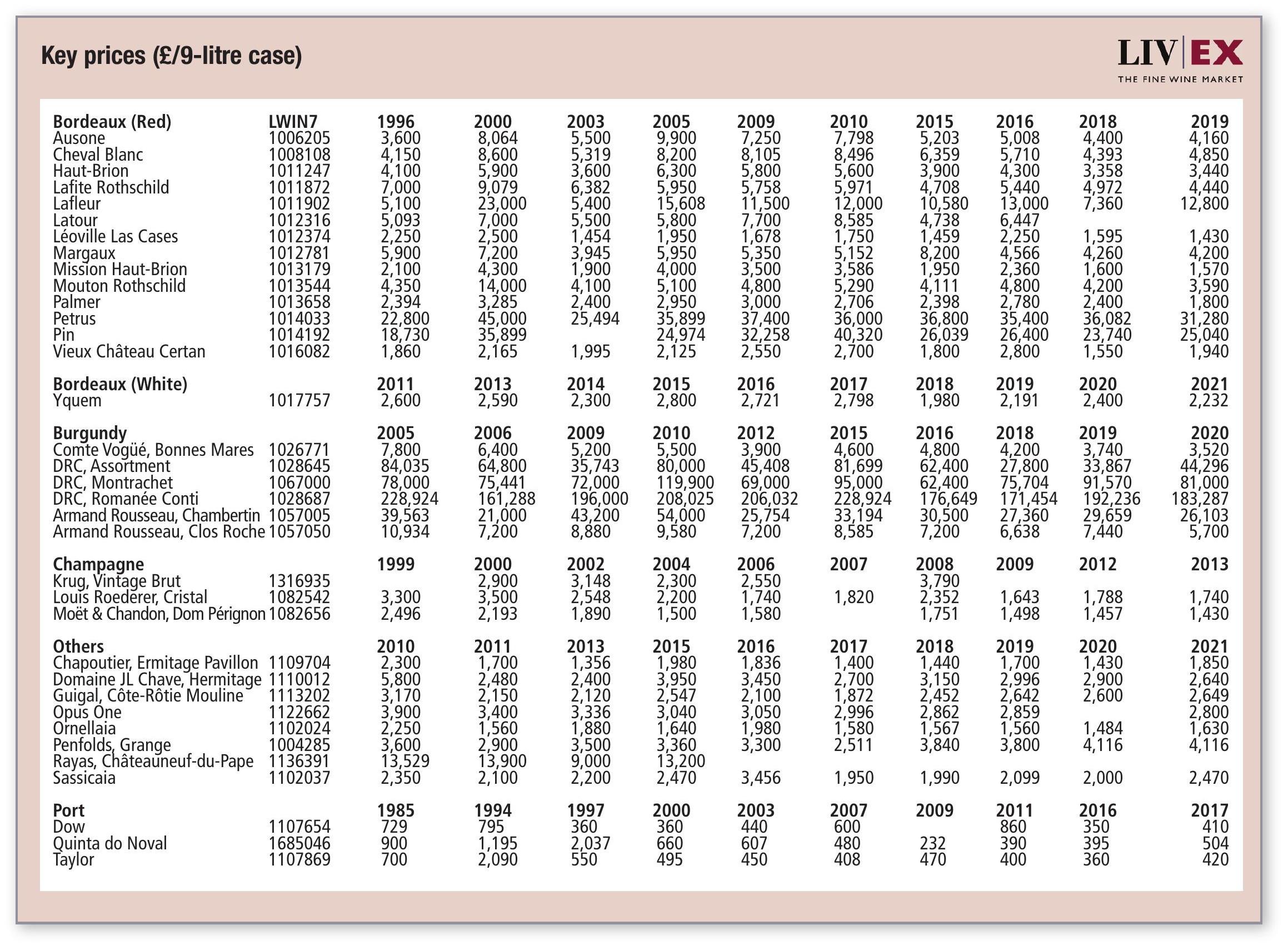 Wines that are up over one year, six months, three months and one month, such as Cheval Blanc and Haut-Brion, look to have decisively stabilised and would appear to represent a lower-risk option.